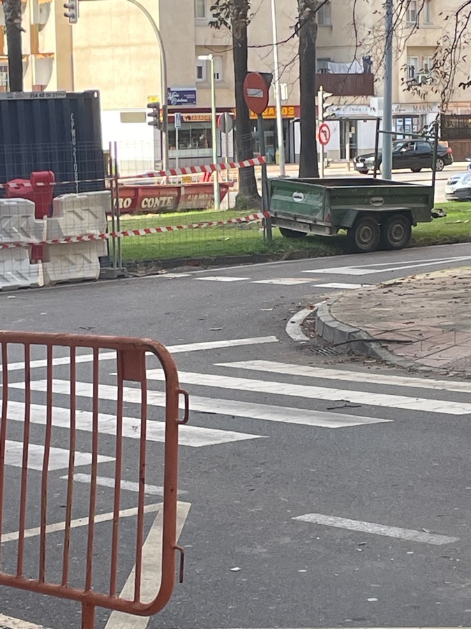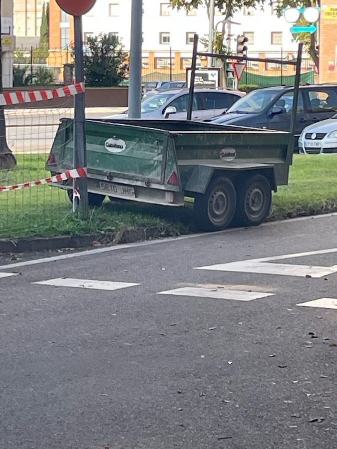 Empresa que ejecuta obra en María aux aparca sus vehículos sobre césped parterre condes de Barcelona, adjunto foto remolque otros días también furgonetas