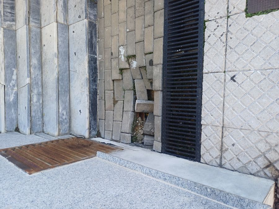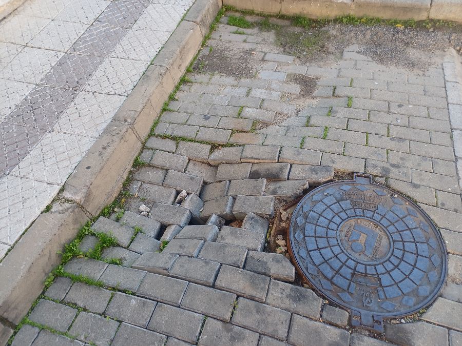 Hundida la acera.