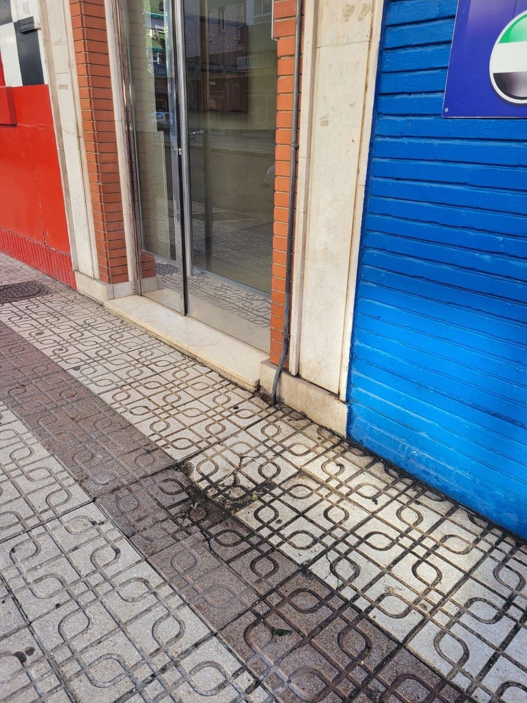 En calle Cardenal Cisneros acera hundida y partida que impide un tránsito normal y entrada al bloque de viviendas del n°2 de esa misma calle. Lleva así añoooosssss