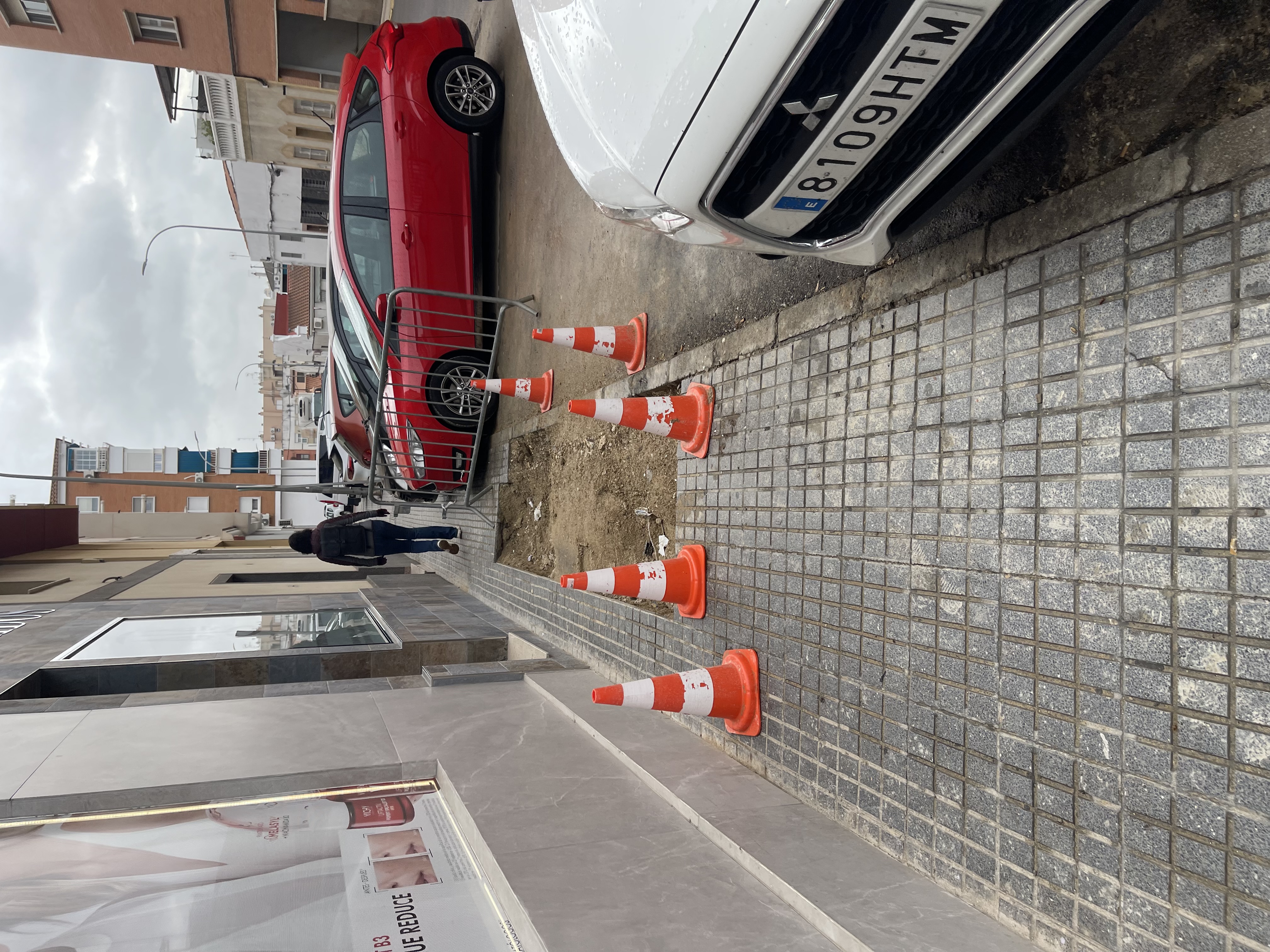 Llevamos 3 semanas con esto así desde que se rompió una tubería y no sabemos hasta cuándo vamos a estar así… no hay nada habilitado para que una persona mayor pueda pasar y ya no hablemos de una persona en silla de ruedas… para cruzar la calle tendrían que cruzarla mal ya que los pasos de peatones uno está pasando la avería y el otro al principio de la calle. Adjunto foto, ahora mismo está sin coches pero normalmente la gente aparca ahí y dificulta más el paso