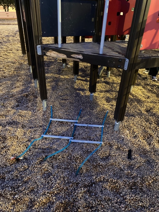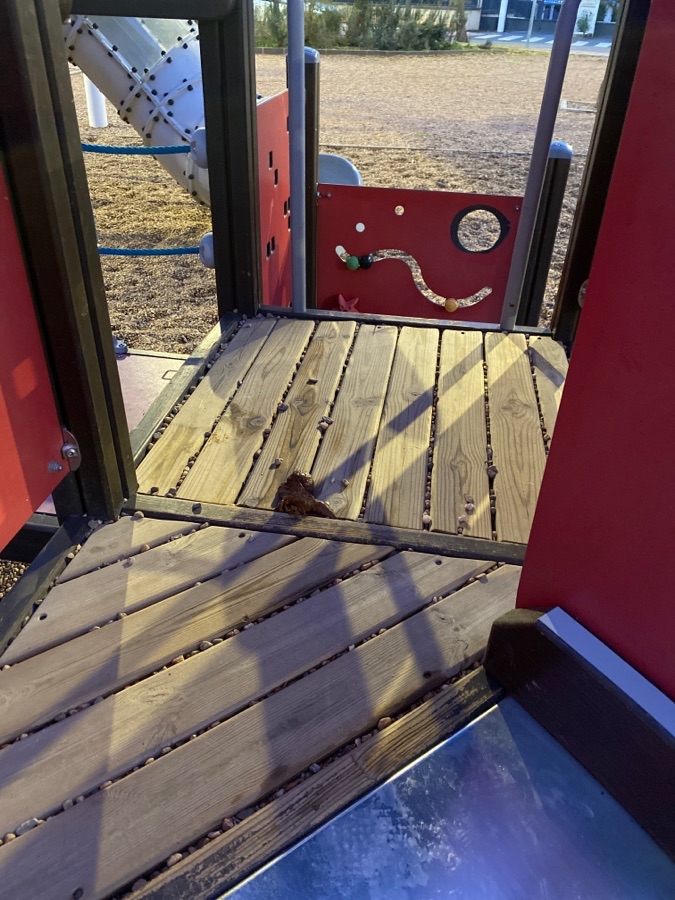 Desperfecto en parque infantil y excrementos humanos en zonas de juego de niños
