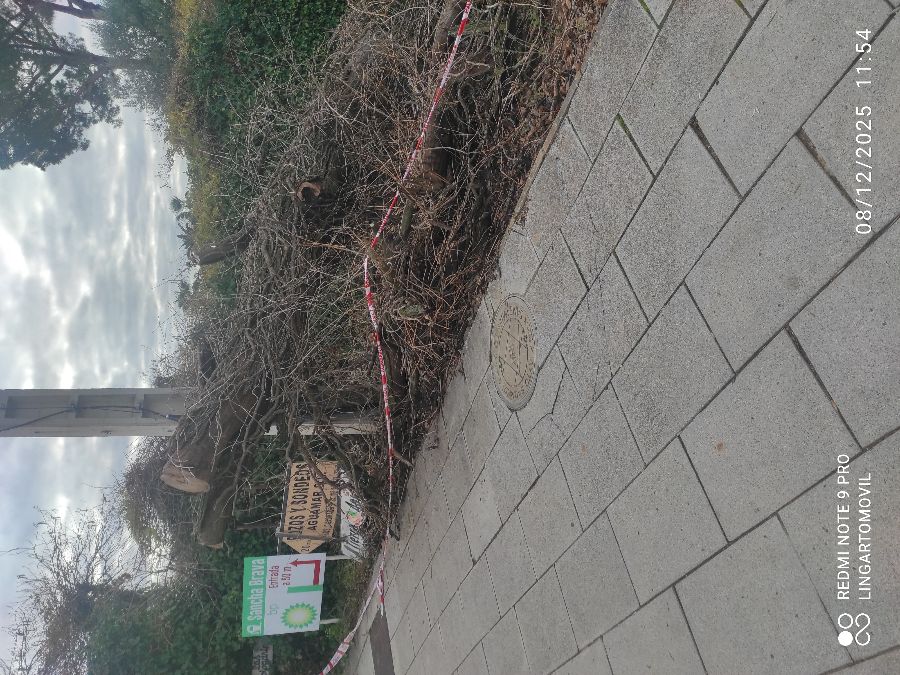 Árbol caído y precintado por Bomberos para retirar ya que invade parte de la acera