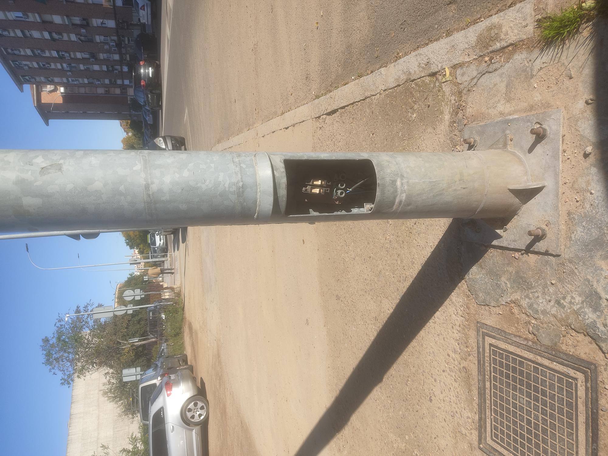 FAROLA SIN TAPA CABLEADO JUSTO AL LADO COLEGIO VIRGEN DE BOTOA PASO DIARIO NIÑOS.