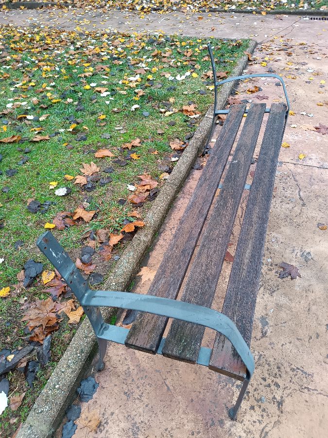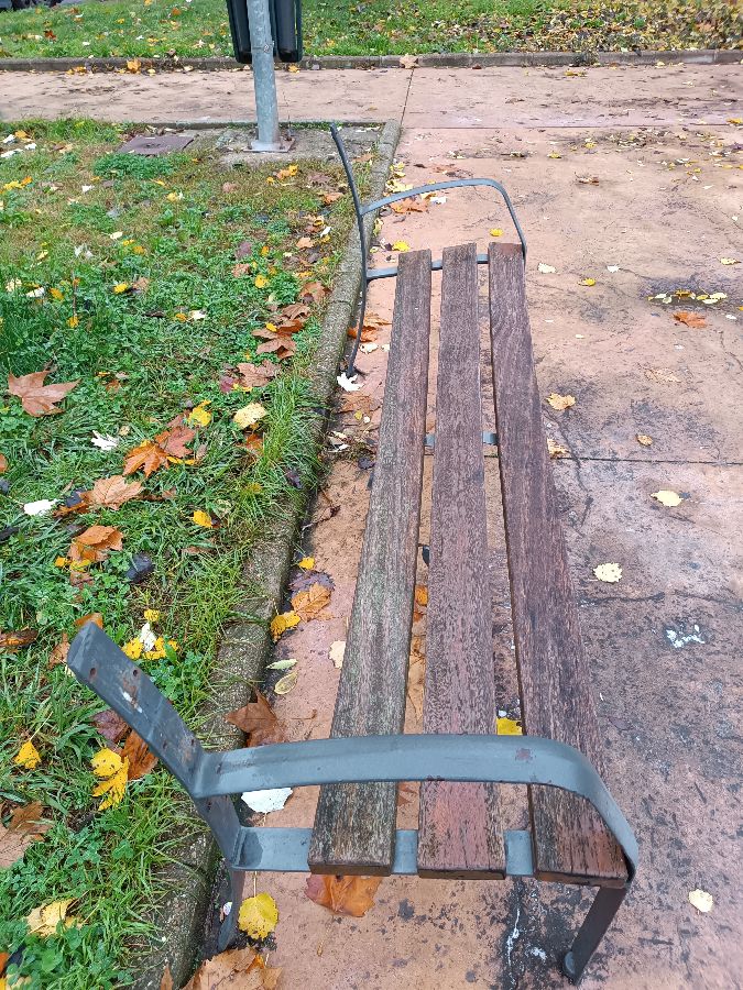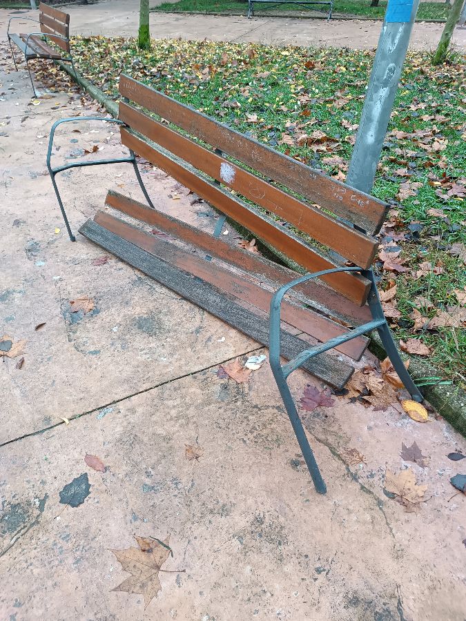 Estado de como están los bancos en el parque de Ciudad Jardín. Los que se van rompiendo no lo reponen, y los que quedan de madera están rotos.