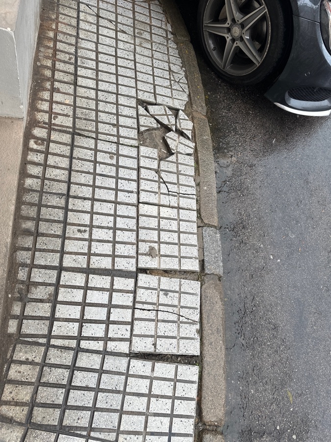Faltan baldosas acabo de levantar a una señora mayor que se ha caído. Es justo en la esquina de vasco Núñez con dosma