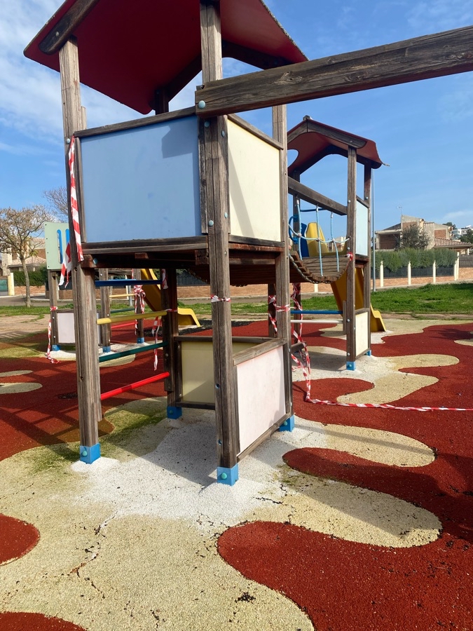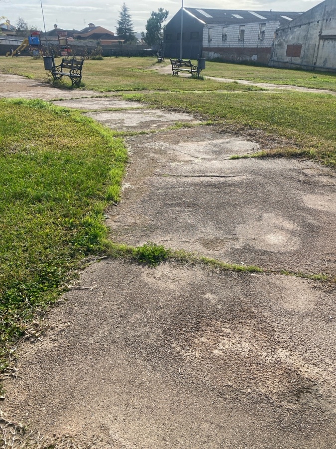 De vergüenza!!! El parque sigue igual desde mi primera queja ! Es el ÚNICO parque que hay en los montitos. Pero ahora si podemos arreglar los 4 parques que tiene las Malvinas y poner nuevo el del cerro de reyes con sus toldos. Solo venís a precintarlo, a quitar el único columpio y esto sigue igual, 11 años viviendo aquí con el parque echo una basura y no está roto por valdalismo es deterioro de los años. Me quejo de la zona de juegos pero el camino que hay de paseo por el parque es una vergüenza también.