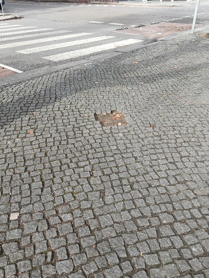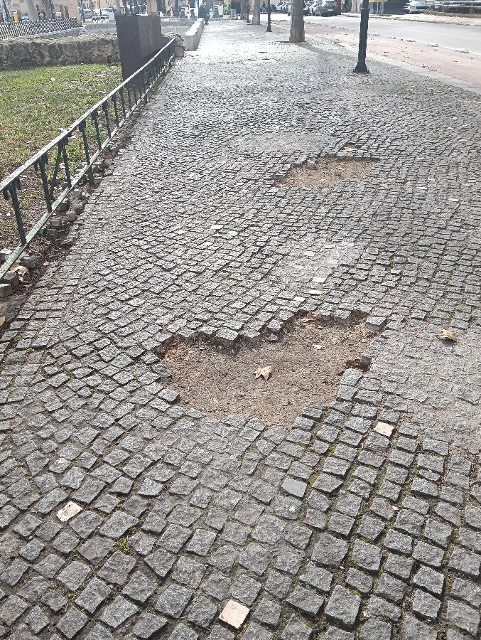 Faltan muchas piezas de piedra en el pavimento junto a Puerta Pilar