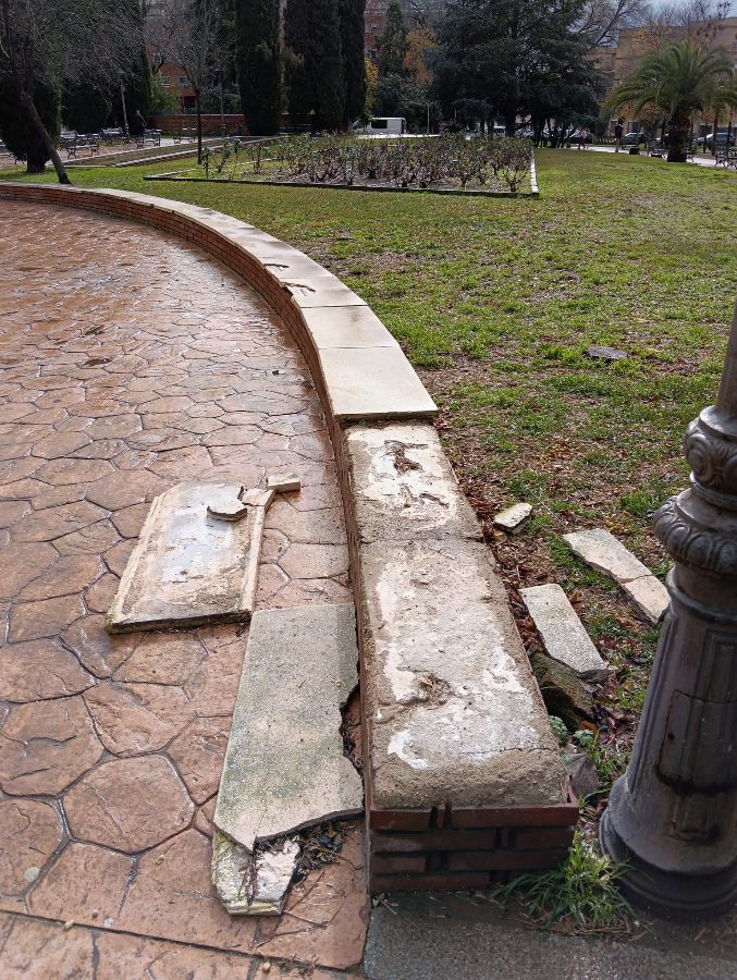 Placas desprendidas en el suelo vial interno parque de San Fernando.