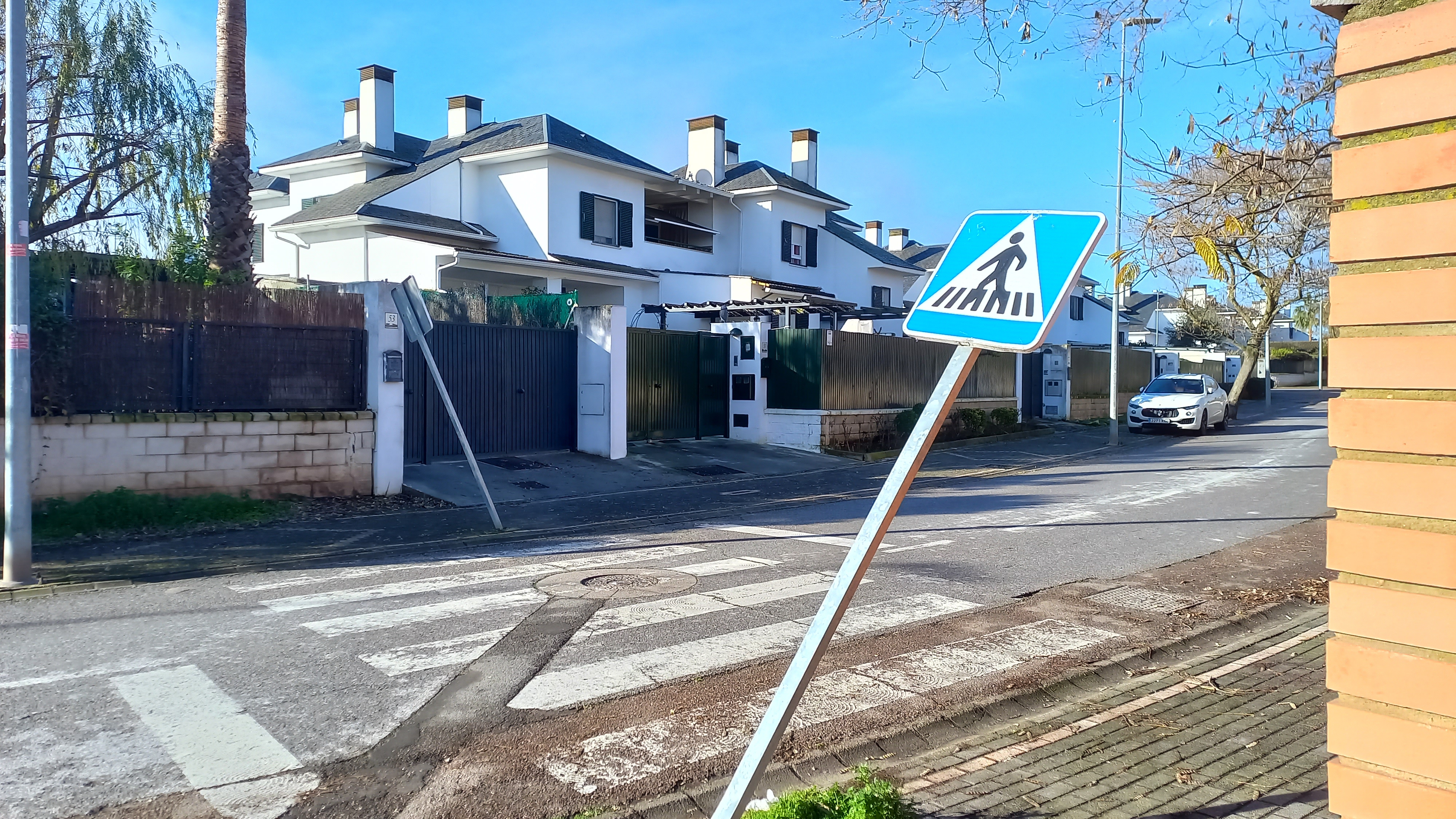 Señales de tráfico desencajadas con evidente peligro para los peatones
