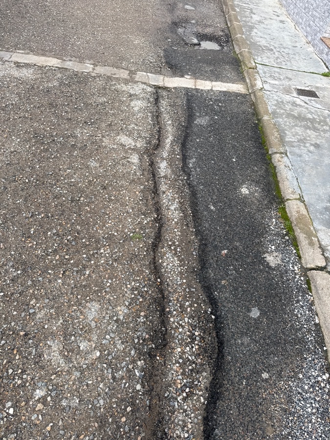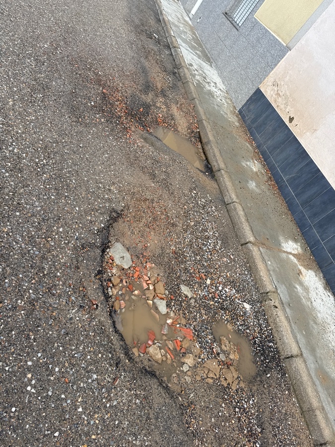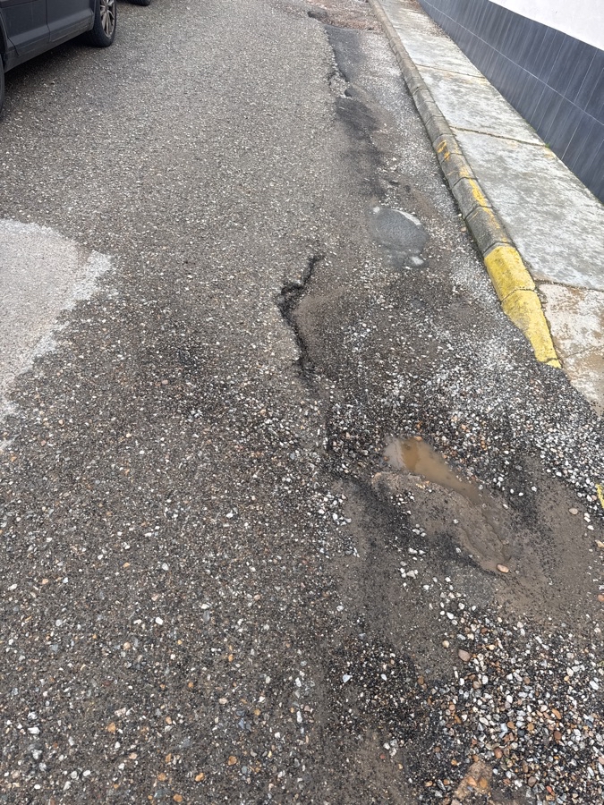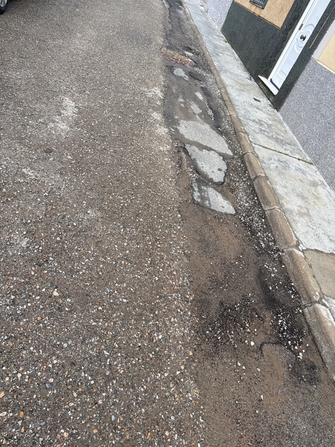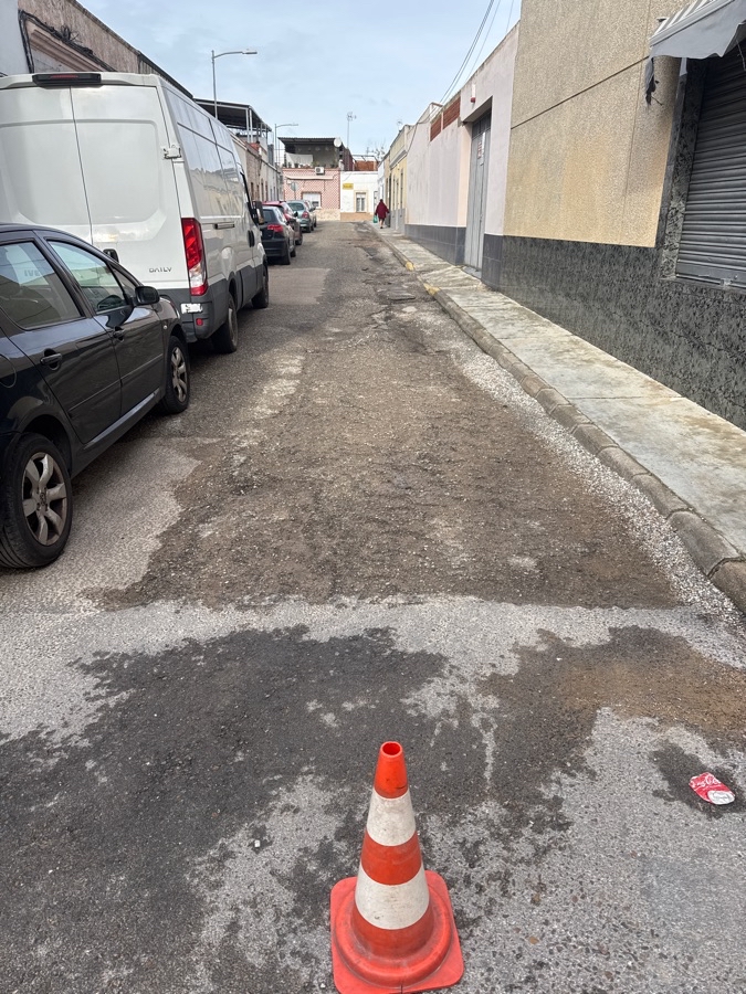 La carretera está en muy mal estado asta tal punto k los coches se suben a la cera