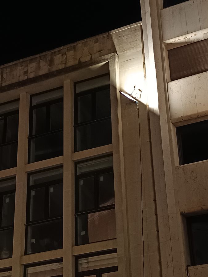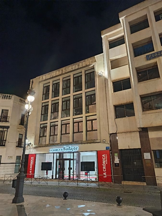 Uno de los focos de la Plaza de España, situado en la fachada del periódico "La Crónica de Badajoz" está orientado hacia arriba, solicito su correcta orientación, muchas gracias.