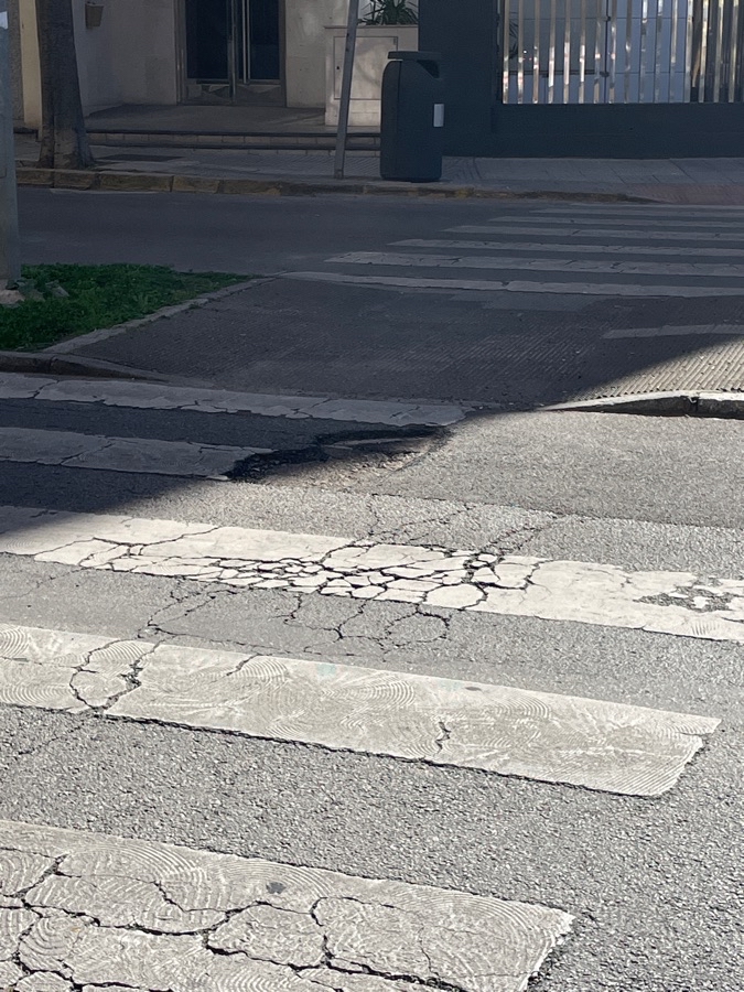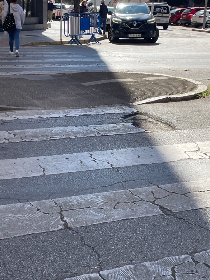 Agujero en aso peatones de Colón 16. Se cae mucha gente al suelo. Es cada vez más grande