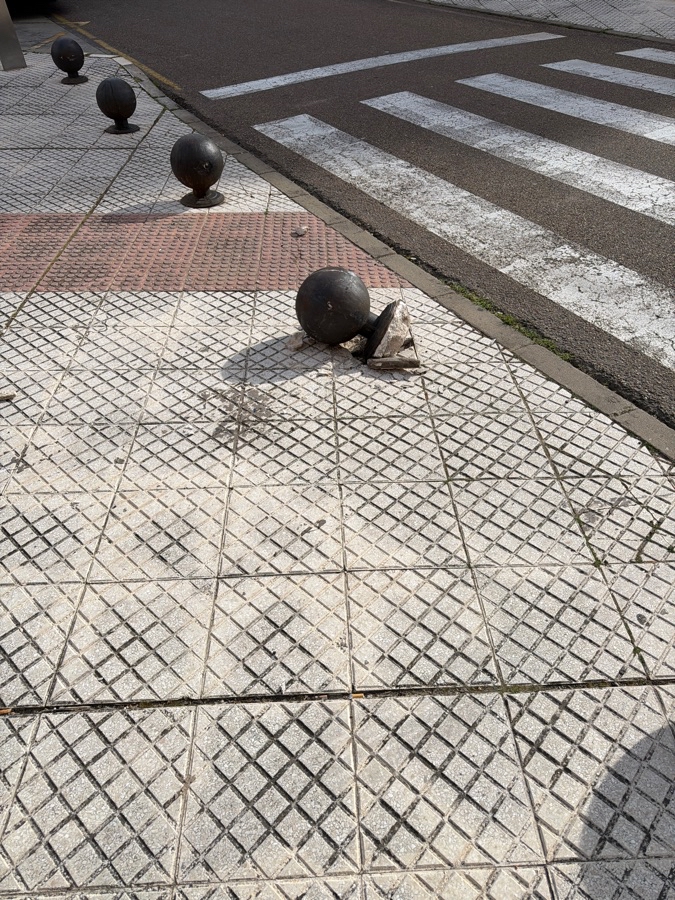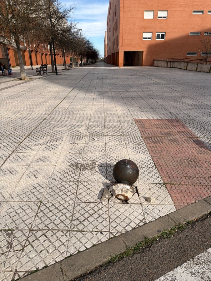 Un vehículo de la empresa Tyndall Telecom de Badajoz, se ha llevado un bolardo al entrar dos furgonetas en una calle peatonal